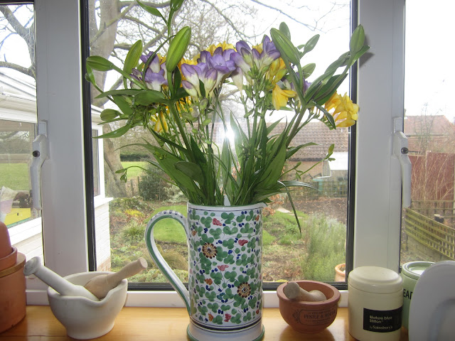 Hello there! I make no apologies for using a similar photo to my previous header - this is such a beautiful bunch as is still going strong since last Wednesday. SO cheerful Hopefully it won't be long before there is some colour in the garden as well.